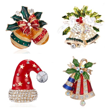 Vendita calda 2024 gioielli di moda natale a tema spilla in metallo strass di natale cappello campana/natale ghirlanda di smalto Pin