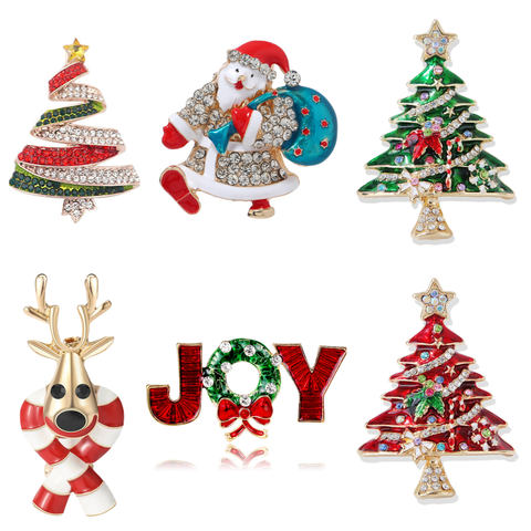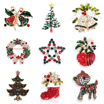 Ingrosso gioielli di moda strass albero di natale spilla di cristallo Babbo Natale pupazzo di neve Design regali di natale decorazione di natale