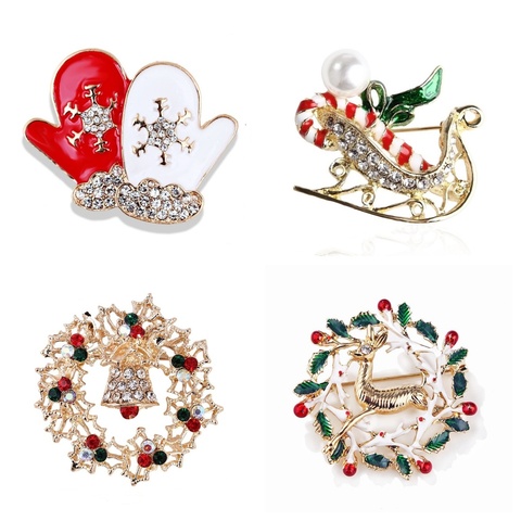 Vendita calda di natale festa di natale gioielli di moda di natale strass ghirlanda natale guanti di Natale spilla di cervo spille di pupazzo di neve