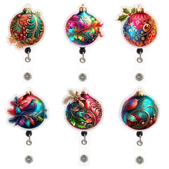 All'ingrosso personalizzato Glitter natale acrilico retrattile distintivo retrattile albero di natale Cartoon animale titolare distintivo con Clip