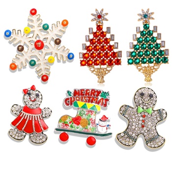 Vendita diretta della fabbrica all'ingrosso spilla con strass per decorazioni natalizie regali biscotti divertenti albero di natale spille con fiocco di neve